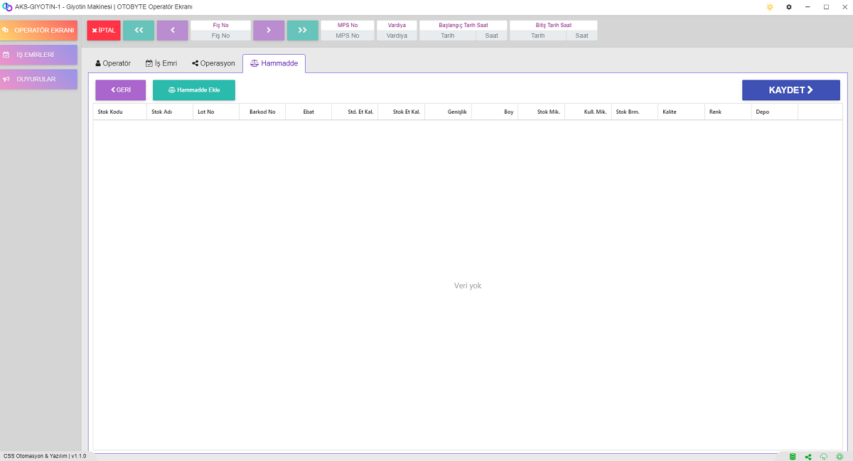 Makineyi ve Operatörün Performans Ölçümünde Çok Büyük Bir Yeri Olan Duruş İşlemleri; Makinenin Arıza Nedenli, Hammadde Eklemesi Yaparken ki Geçen Süre ya da Başka bir Sebepten Duruş Gerçekleştirdi ise Bunu Raporlamak ve Performansı Ölçmek Adına Duruş Nedenini Saatini Süresini Belirterek Bir Duruş Girmektedir.